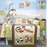 Boutique Baby Boy Framland Ranch 10pcs Crib Bedding SETProduct Description: This Set Fits all Toddler Beds and Cribs (Single or Convertible) (USA, UK, AU, Etc..) The Set includes following 10 pieces: * Hand Embroidery Crib Quilt * Hand Embroidery Crib Bumper * Fitted Sheet * Crib Skirt (Dust Ruffle) * 2 pieces of Window Valances * Diaper Stacker * Toy Bag * Baby Pillow * Baby Bib