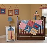 My husband and I have 2 girls and are pregnant now with our first boy. Money is a bit tight right now so we went looking for a crib set that would be fitting for our little boy without breaking the bank. With our 2 girls we spent $160+ just for a skirt, bumper, sheet, and quilt. Of course we then had to purchase valances and mobiles to match. It was nice to pay half the price and get twice as much. We just received the set in the mail a couple of days ago and I got it washed and set up in the nursery. I was really surprised at how well the set was made. The dark tan color blocks are actually a corduroy type material. I was worried the quilt would be quite thin for the money we paid but it's great! The only problem we had was the one valance. It's not big enough to cover the window. We have put it between the 2 curtains we have up and it looks nice. Still haven't