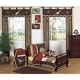 Dinosaur Land 5pc boys toddler bedding set by JoJo Designs will transform your child's room into a Jurassic Kingdom! This bedding collection features embroidered appliques of dinosaurs like the Pterodactyl, T-rex and Brontosaurus in a stunning color combination of Rust, Avocado, Butternut Yellow, Chocolate, Camel and Ivory. Every piece is non allergenic and machine washable for ease and repeated use. Made by JoJo Designs, this set fits all toddler beds, and is fully inspected for the highest quality.