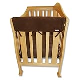 109054Brown Fleece Crib Wrap Convertible Crib Rail Cover for use on side rails. Protect your baby, and protect your crib investment from teeth marks. Just wrap and tie on. Safer solution is lightly padded with a waterproof layer. 2 pieces included. Features: -Side crib rail cover. -Front: brown fleece, back: waterproof mattress pad material. -Two rail covers for the short sides of a crib. -Soft sherpa fleece outside with light padding and a waterproof backing. -Keeps crib free of teeth marks and potential moisture damage. -Protects a baby from ingesting wood, stain, or varnish. -Easy to tie on to crib rails and stays in place. Specifications: -Material: 100pct polyester fleece front, waterproof mattress pad fabric backing, 125 gsm batting. -Machine washable in super soft sherpa fleece.